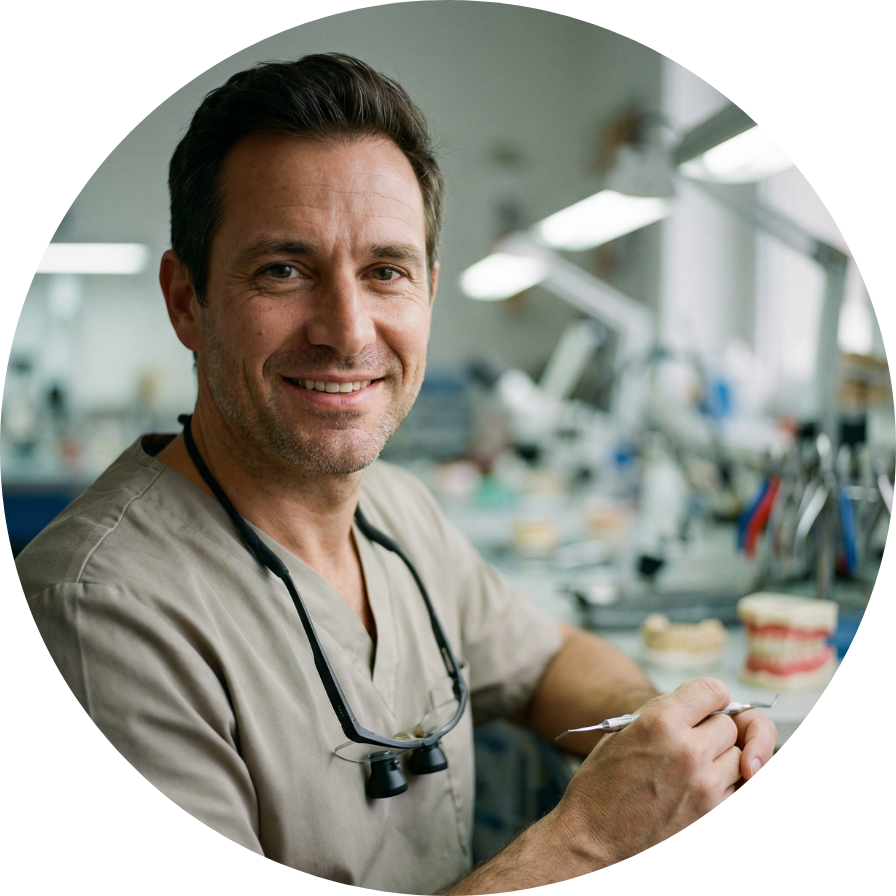 Dr. Möller konzentriert sich auf moderne Zahntechnik. Er arbeitet besonders gern an Implantatprothetik, digitaler Fertigung und ästhetischen Restaurationen. Er setzt auf klare Kommunikation mit Zahnärzten und passt jede Arbeit individuell an. Seine Erfahrung verbindet präzises Handwerk mit aktuellen CAD/CAM-Verfahren.