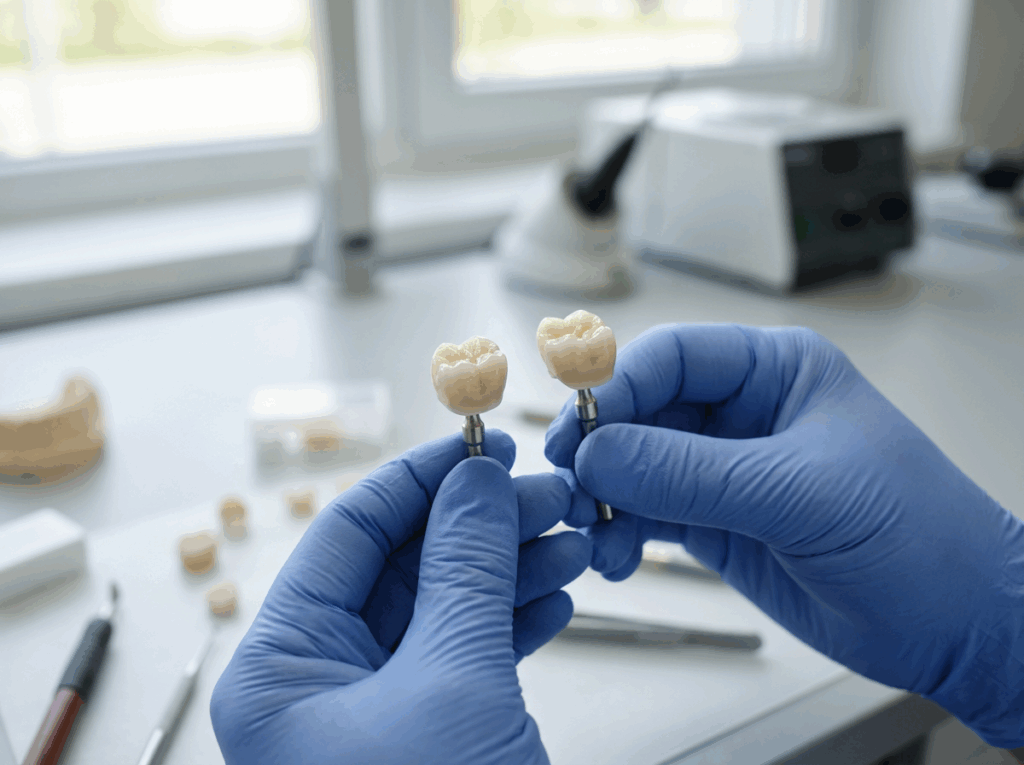 Du bekommst Kronen, Brücken und Veneers, die farblich sauber abgestimmt sind und natürlich wirken. Wir fertigen sie digital und passen sie präzise auf deine Vorgaben an.